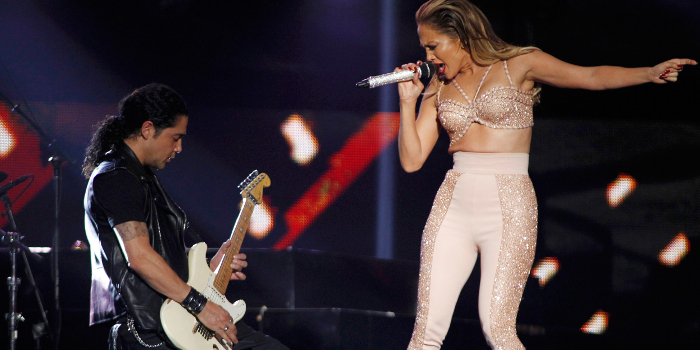 The performance included Selena’s band Los Dinos, with A.B. Quintanilla playing bass, Chris Perez on guitar and Suzette Quintanilla on the drums. J.Lo performed “Como La Flor”, “Bidi Bidi Bom Bom”, “Amor Prohibido”, “I Could Fall In Love” and “No Me Queda Mas” with Selena photos in the background of the awards show broadcast live on Telemundo.