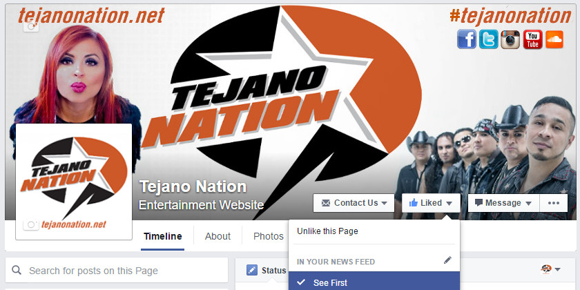 Facebook users can now prioritize their news feed to make sure that Tejano Nation remains at the top.