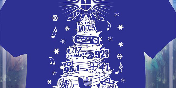 “This tee is a great example of how much Univision cares about their community by creating something to commemorate a special cause and finding a way to give back,” Urban City and Tejano Por Vida owner Juan Gonzalez told Tejano Nation. “I wanted to create a look that reminded you of the traditional White Christmas and at the same time tie-in the Blue Santa Toy Drive.”