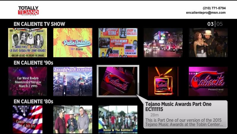 Current programming includes episodes from the show “En Caliente,” concert footage, music videos, and movies focused on the culture of Tejano music.