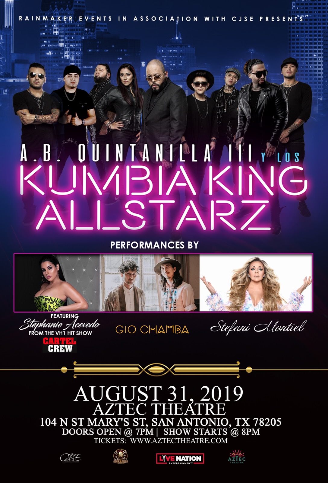 When it comes to a party, AB Quintanilla III and the Kumbia Kings All Starz know how to get it started, so come and check them out along with Stefani Montiel, Stephanie Acevedo from the VH1 Hit show, “Cartel Crew,” plus a few of their friends!