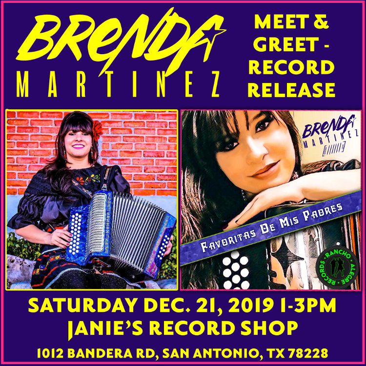 San Antonio-based Conjunto accordionist Brenda Martinez released her debut album, “Favoritas De Mis Padres,” on Tuesday, December 17, 2019. In addition to the standard availability on all digital platforms and CD, the album is also available as a vinyl LP, a first for Conjunto for several decades.