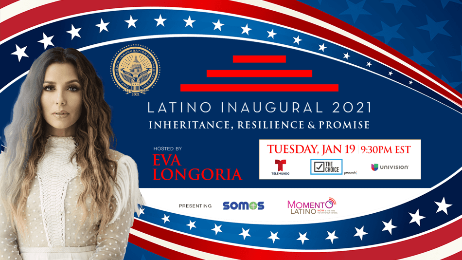 WASHINGTON, D.C. – Actress and activist Eva Longoria Bastón was announced today as the host of the official Latino Inaugural 2021: Inheritance, Resilience & Promise streaming on The Choice channel on Peacock, and on Telemundo’s and Univision’s digital and social platforms on Tuesday, January 19 at 9:30 p.m. EST as part of the official five day-slate of inaugural programming from the Biden-Harris Presidential Inauguration Committee.