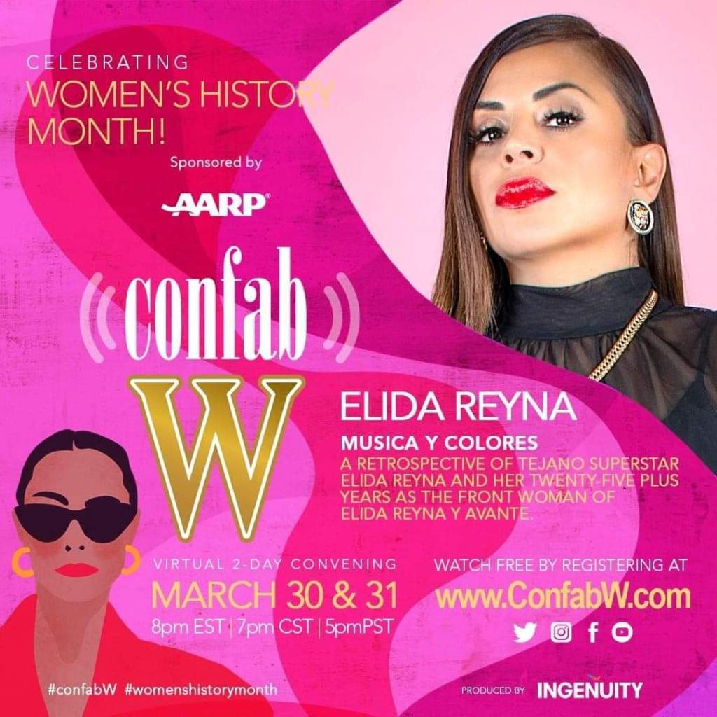 A retrospective of Tejano superstar Elida Reyna and her twenty-five plus years as the front woman of two-time Latin Grammy winners Elida Reyna Y Avante will be featured at Confab W, a free two-day virtual event scheduled March 30-31.
