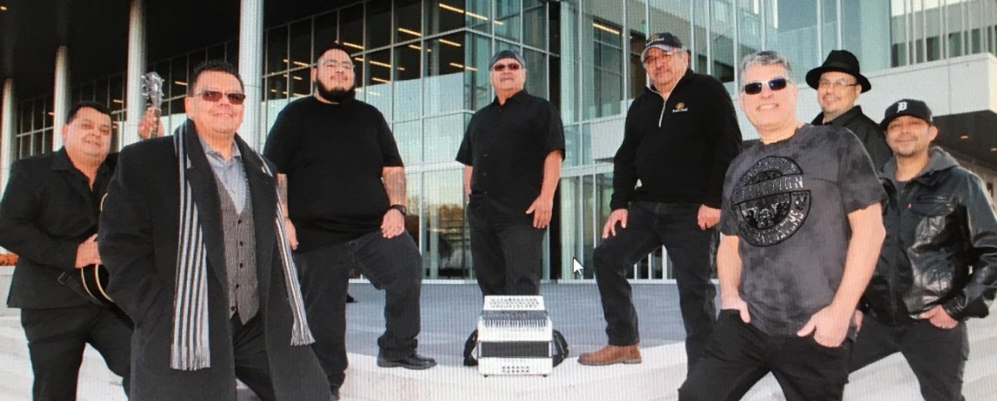 Michael Martinez (Guitar/Vocals), Javier Guerrero (Sax/Percussion), Augie Munoz (Bass), Guillermo “Willy” Martinez (Accordion/Vocals), Lupe Rodriguez (Bajo Sexto/Vocals), George Salazar (Vocals), and Steve Ortiz (Drums). Missing is John Ortiz (Keys/Percussion)