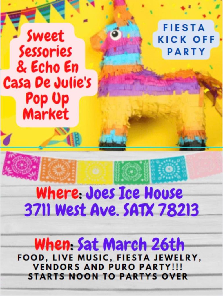 While Sweet Sessories is an online boutique, these special edition pieces are only available at upcoming in-person pop-up events during Fiesta. The first event begins at noon on Saturday, March 26 at Joe’s Ice House (3711 West Avenue, San Antonio) and the second event will be at Pica Pica Plaza (910 SE Military Drive, San Antonio) on Wednesday, March 30, from 3pm to 7pm.