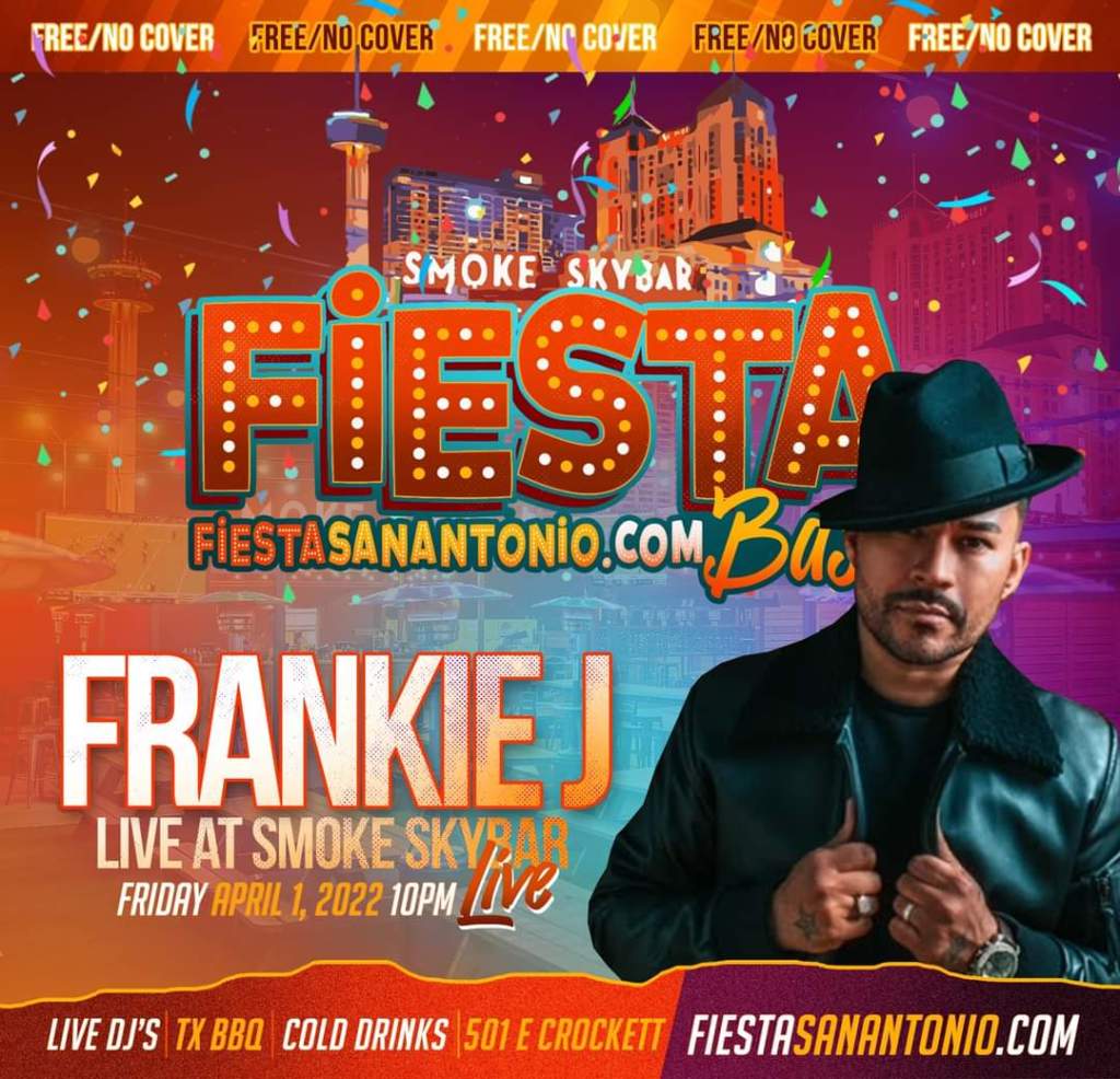 The soulful sounds of Latin, urban, and R&B crooner Frankie J will fuel the Fiesta celebration in downtown San Antonio on Friday, April 1, during a free full concert performance at Smoke BBQ+Skybar from the crowd favorite.