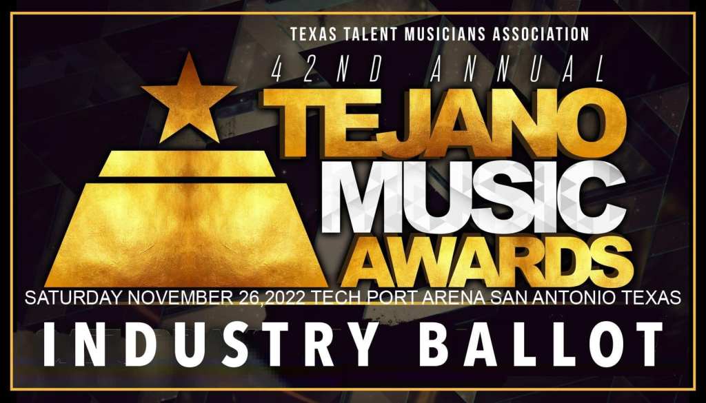 The Industry Ballot is only for those in the Tejano music industry — including record labels, media, artists, and management — to vote for artists to be named nominees for the upcoming awards show, produced by the Texas Talent Musicians Association (TTMA). Official Top 5 nominees for the TMAs will be announced later. The deadline to vote on the Industry Ballot is midnight (12:00 a.m.) on September 18, 2022, at TejanoMusicAwards.com for those qualified to vote. Questions can be directed via email to binog@tejanomusicawards.com.
