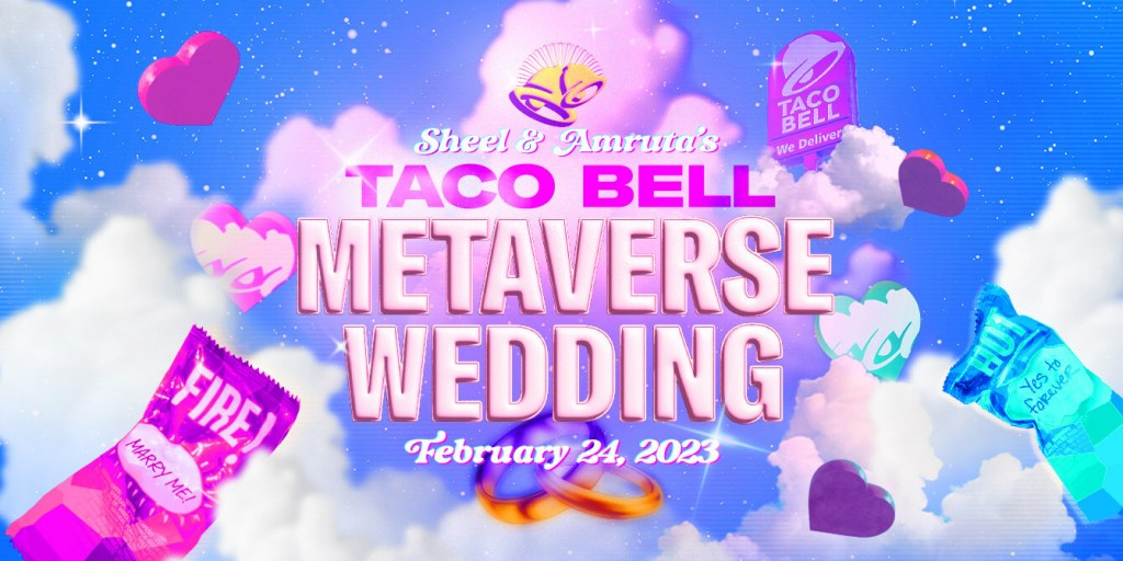 IRVINE, Calif. — (PRNewswire) — (Taco) Bells are ringing as the lucky couple who will be tying the knot at Taco Bell’s metaverse wedding is unveiled! Lifelong Taco Bell fans Sheel Mohnot and Amruta Godbole will say ‘I do’ on February 24 with an out-of-this-realm wedding celebration in Decentraland.