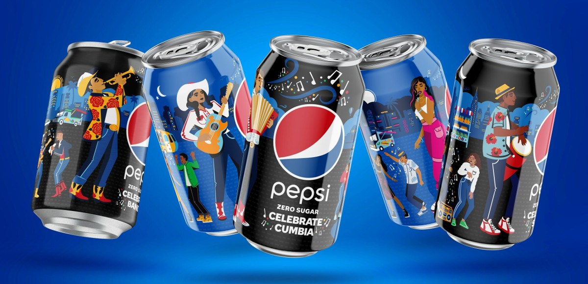 Inspired by the vibrant U.S. cities where Latin music continues to grow in popularity, the exclusive Pepsi and Pepsi Zero Sugar can collection celebrates five of the many different genres that have transcended their countries to become chart-toppers in the U.S. Each of the cans is dedicated to one of the five genres – Banda, Cumbia, Norteño, Salsa, and Reggaeton – and include artistic nods to the culture, people, and places in each city where these genres have become a part of the community. The musicians featured on each can hold an instrument or piece of equipment unique to their genre, which collectively forms a single Latin fusion band when all cans are placed together side-by-side.