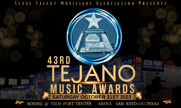 The biggest night in Tejano music will return to the “Capital of Tejano Music” as the Texas Talent Musicians Association (TTMA) announced the 43rd annual Tejano Music Awards will take place at the Boeing Center at Tech Port in San Antonio, Texas, on Saturday, October 21, 2023.