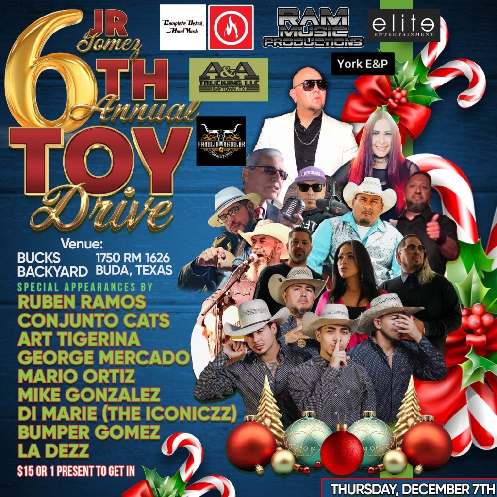 If you love Tejano music and want to support a good cause, don’t miss the 6th annual JR Gomez Toy Drive at Buck’s Backyard in Buda, Texas, on Thursday, December 7, 2023. The event will feature some of the best Tejano artists in the industry, including Ruben Ramos, Conjunto Cats, Art Tigerina, George Mercado, Mario Ortiz, Mike Gonzalez, Di Marie, La Dezz, Demmi Garcia, and Bumper Gomez.