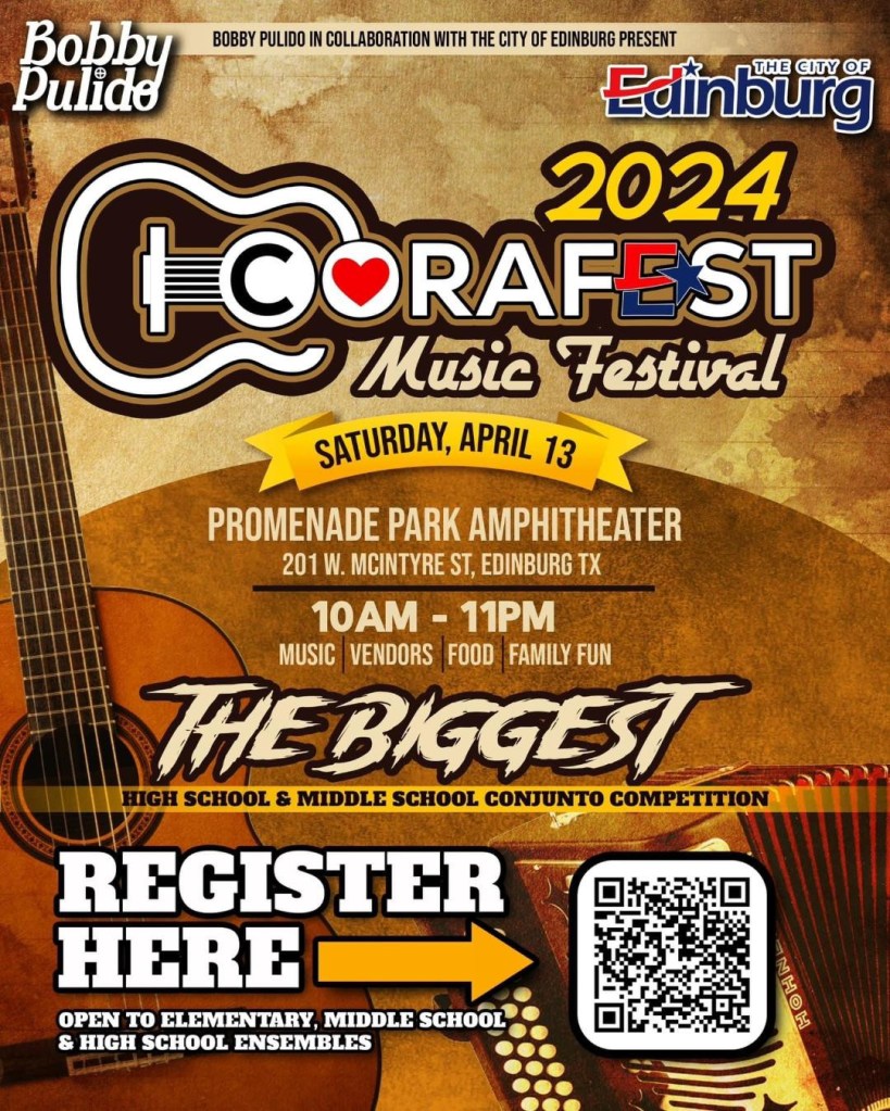 The city of Edinburg, in collaboration with the Latin Grammy winner Bobby Pulido, presents the inaugural CORAFEST Conjunto Competition. This event, set to be the biggest middle and high school Conjunto competition, is scheduled for Saturday, April 13, at the Promenade Park Amphitheater in Edinburg, Texas.