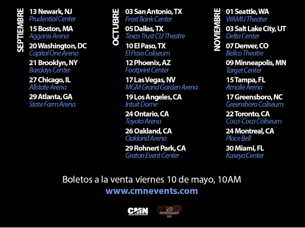 In the United States and Canada, the presale will begin on Thursday, May 9, at 10 am local time, and the general public sale will be activated on Friday, May 10, at 10 am local time at cmnevents.com.