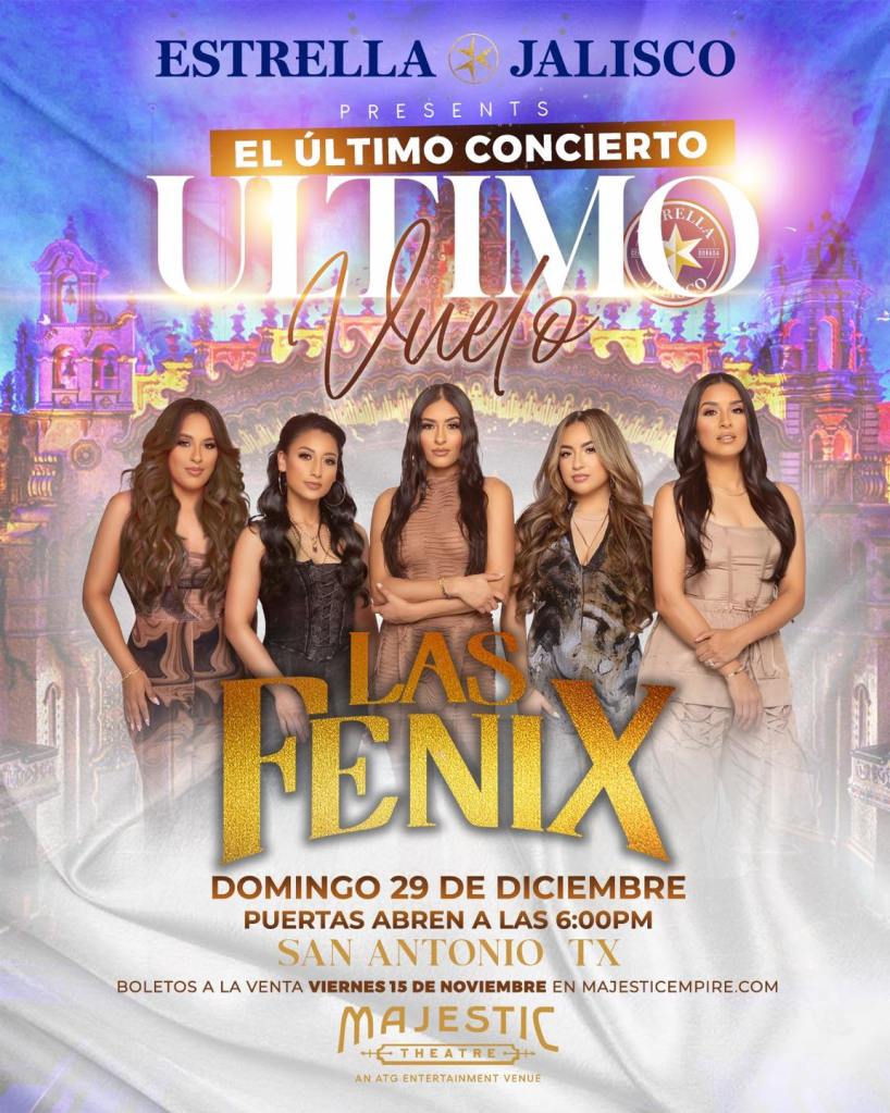Tickets for the final concert from Las Fenix, “El Último Vuelo”, will go on sale this Friday, November 15th, at majesticempire.com. The group added, “Join us for this special day! See you there!”
