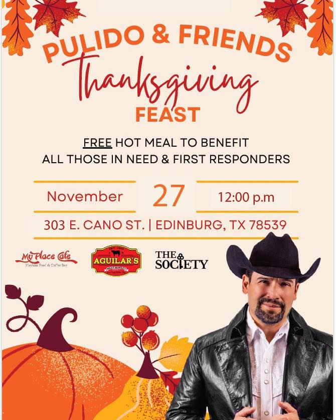 Edinburg, Texas – Following the success of his inaugural event last year, Latin Grammy winner Bobby Pulido is set to host the 2nd Annual Pulido & Friends Thanksgiving Feast. This heartwarming event will take place on Wednesday, November 27, 2024, at 303 E. Cano Street in Edinburg, Texas, starting at 12:00 p.m. The feast aims to provide hot meals to those in need and first responders, ensuring that everyone has the opportunity to enjoy a delicious Thanksgiving meal with their loved ones.