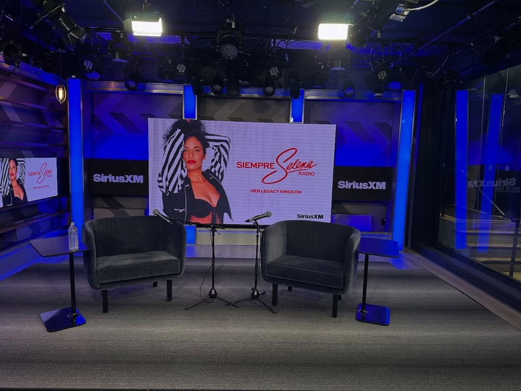 The post included a behind-the-scenes photo from the interview space, featuring a banner of Selena and the heartfelt phrase, “Siempre Selena…Her legacy sings on,” alongside the SiriusXM logo.