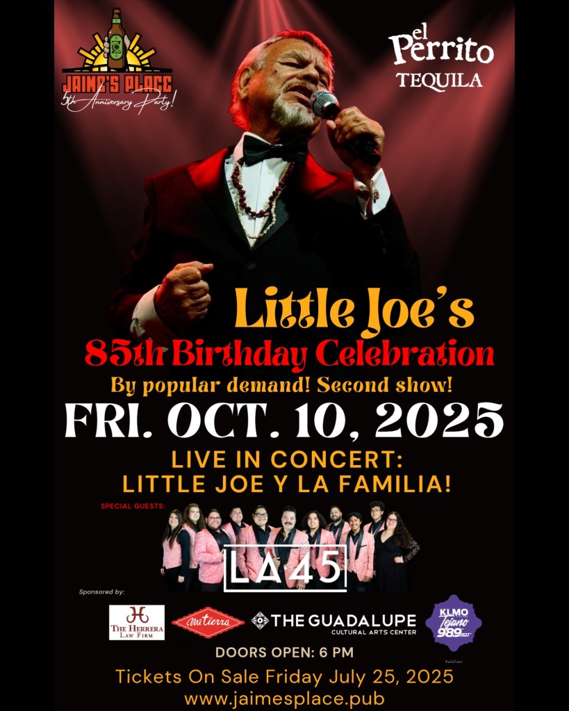 SAN ANTONIO, TX — After the first show sold out in just 10 hours, Jaime’s Place has announced a second night for Little Joe’s 85th Birthday Celebration, now set for Friday, October 10, 2025, at their popular venue on the city’s Historic Westside (1514 W. Commerce). The original Saturday night show (October 11) sold out almost immediately, proving that the legendary “King of the Brown Sound” remains one of Tejano music’s most beloved and enduring figures.