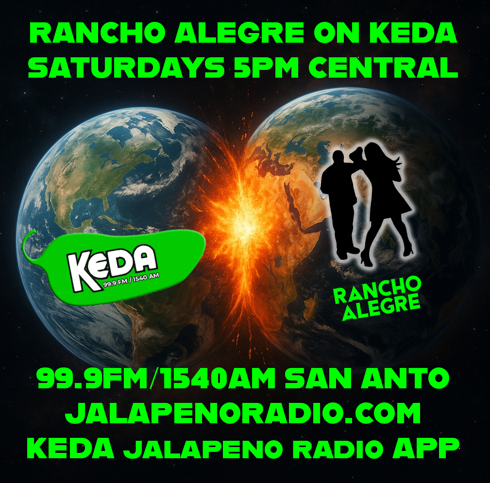 Rancho Alegre airs Saturdays at 5pm on KEDA Radio 99.9FM/1540 AM in the San Antonio area, online at jalapenoradio.com and on the KEDA app.