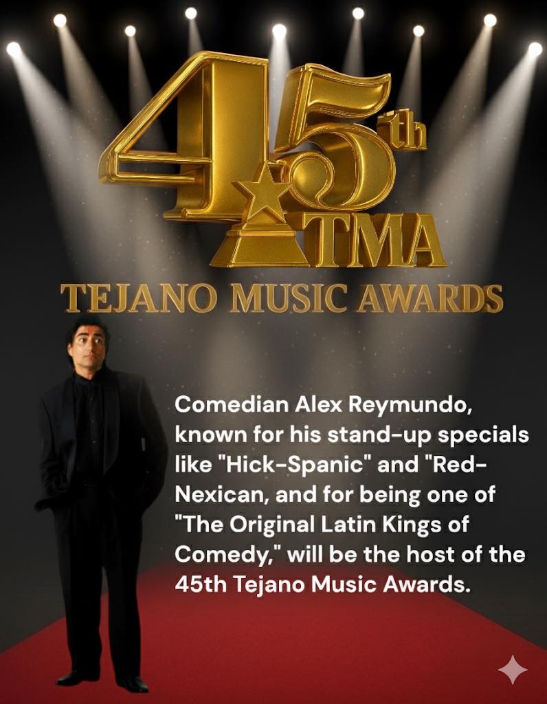 The Texas Talent Musicians Association (TTMA), producers of the annual Tejano Music Awards, announced that comedian Alex Reymundo will host the 45th edition of the “Biggest Night in Tejano Music.” For the first time in many years, the prestigious event will move away from San Antonio, taking place at the Texas Rodeo Saloon in Katy, Texas, on Friday, November 21, 2025.