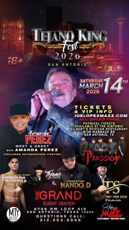 The event will be held at The Grand Event Center, located at 6700 NW Loop 410, San Antonio, TX 78238, transforming the venue into a celebration of Tejano pride and Latin music culture. Along with live performances, fans will have access to VIP experiences and a meet-and-greet with Amanda Perez, which includes an autographed poster.