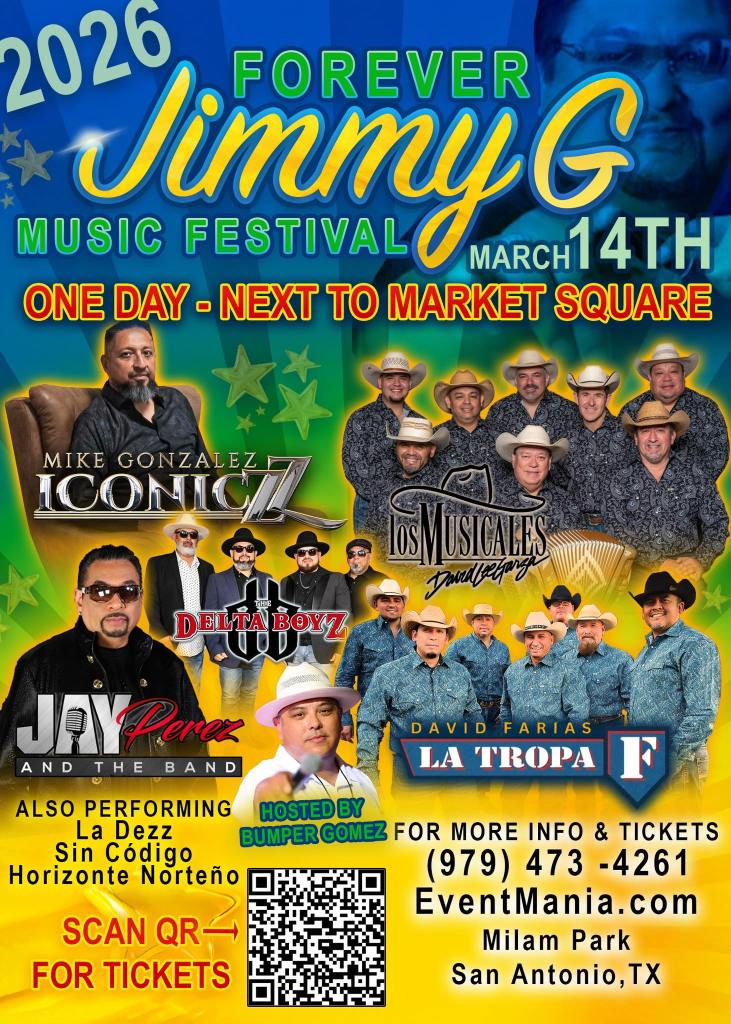 The full performance lineup has been unveiled for the highly anticipated Forever Jimmy G Music Festival, set for March 14 at Milam Park in downtown San Antonio, next to the historic Market Square.