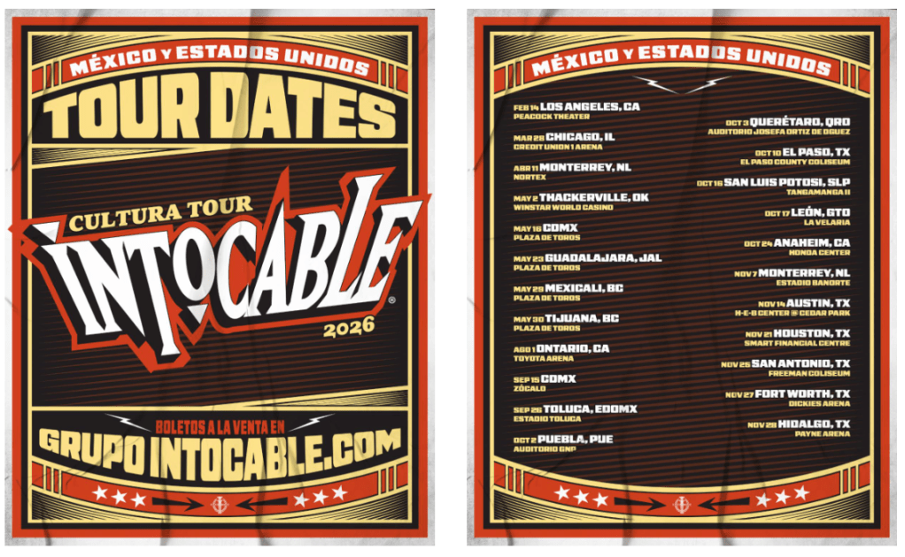 The tour kicked off February 14 in Los Angeles at the iconic Peacock Theatre and will travel across the United States before concluding November 28 in Hidalgo, Texas. More than just a series of concerts, the Cultura Tour represents a powerful reflection on identity, heritage, and the shared experiences that have defined Intocable’s decades-long career.