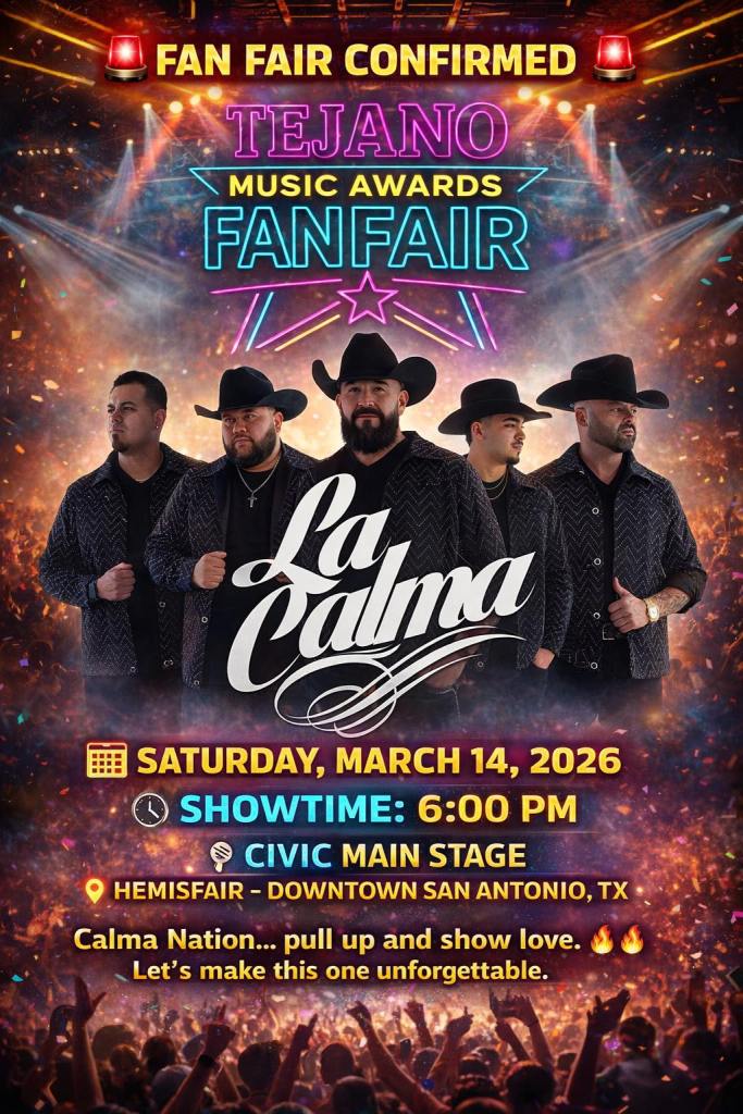 Fans can catch La Calma live at the Tejano Music Awards Fan Fair on Saturday, March 14, at 6 p.m. on the Civic Main Stage.