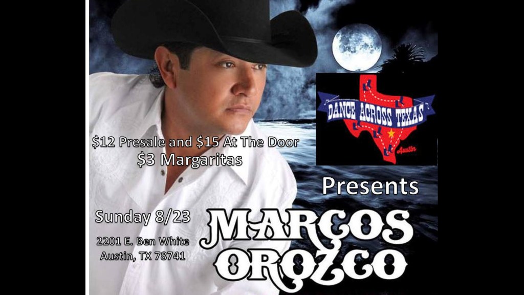 (AustinVida) – Sunday August 23, Dance Across Texas welcomes award-winning Tejano superstar Marcos Orozco, along with his top-notch backing band, Grupo Rebelde.