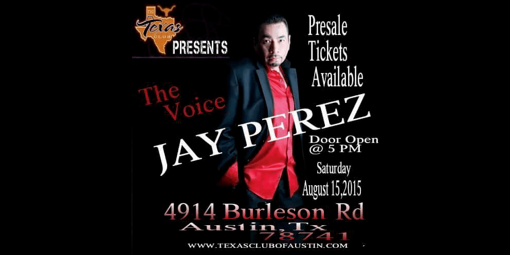 (AustinVida) – Tonight, the Texas Club Bar and Grill welcomes “The Voice” Jay Perez back to Austin.