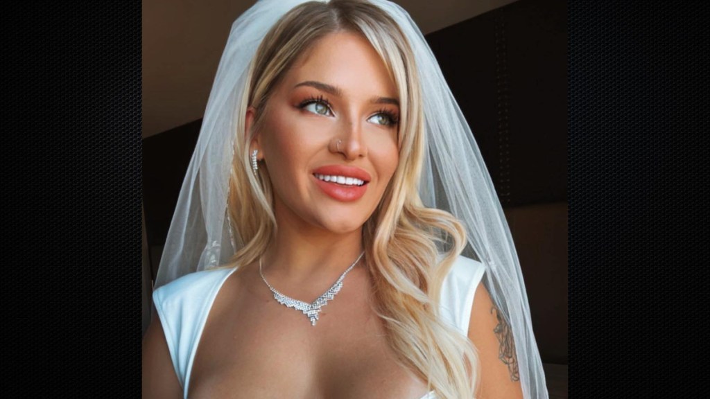 The singer wore a white mermaid-style gown with a plunging neckline for her nuptials with Lucky Joe in Las Vegas